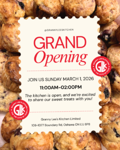 Founded on family tradition and a passion for made-from-scratch food, Granny Lee’s Kitchen specializes in Jamaican baked goods and community-focused catering. The new location expands the bakery’s ability to serve Oshawa and the Greater Toronto Area.